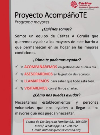 Recordamos que si alguno de ustedes sabe de alguna persona mayor que necesite ser ayudada, Caritas Interparroquial puede tratar de buscar una solución para ella. Basta que usted avise a estos teléfonos o correo indicándoles dónde vive esa persona o cómo la pueden llamar.