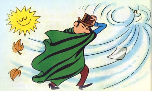Un día el sol y el viento hicieron una apuesta: quién de los dos haría que un caminante se quitara la capa.