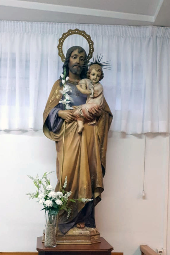 La imagen de San José que está en la Capilla de la parroquia va ser restaurada próximamente. Esta imagen ya necesitaba una restauración cuando nos la donaron. Hasta ahora no se pudo llevar a cabo.