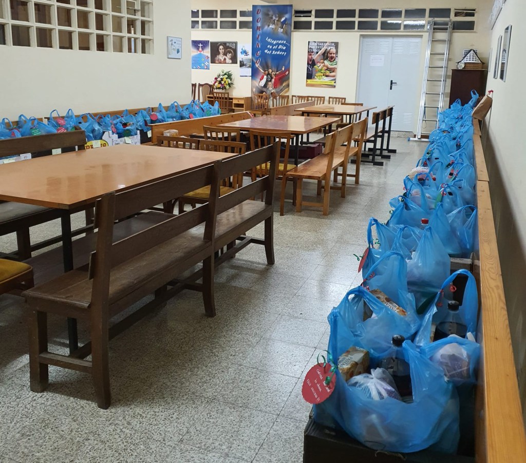 Los voluntarios de Caritas parroquial prepararon con todo detalle las numerosas bolsas para entregar en esta Navidad a las familias necesitadas. Agradecemos su dedicación siempre generosa y eficaz. Y muchas gracias también a todas las personas que colaboraron con su donativo. Que el Señor les colme a todos con sus bendiciones.