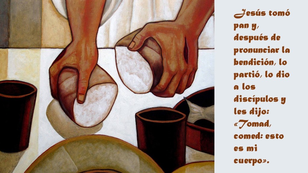 Primer significado: el Cuerpo “entregado roto” de Cristo. El pan que vamos a recibir es el Cuerpo de Cristo entregado a la muerte, el Cuerpo roto hasta la última donación, en la Cruz.Segundo significado: por la fracción de un solo pan se pone de manifiesto la unidad de los fieles. Todos comemos del mismo pan. Y se manifiesta la caridad porque un solo pan se distribuye entre hermanos