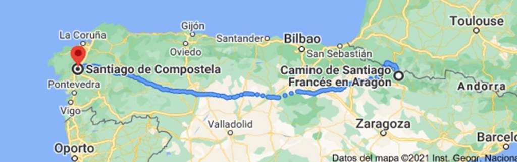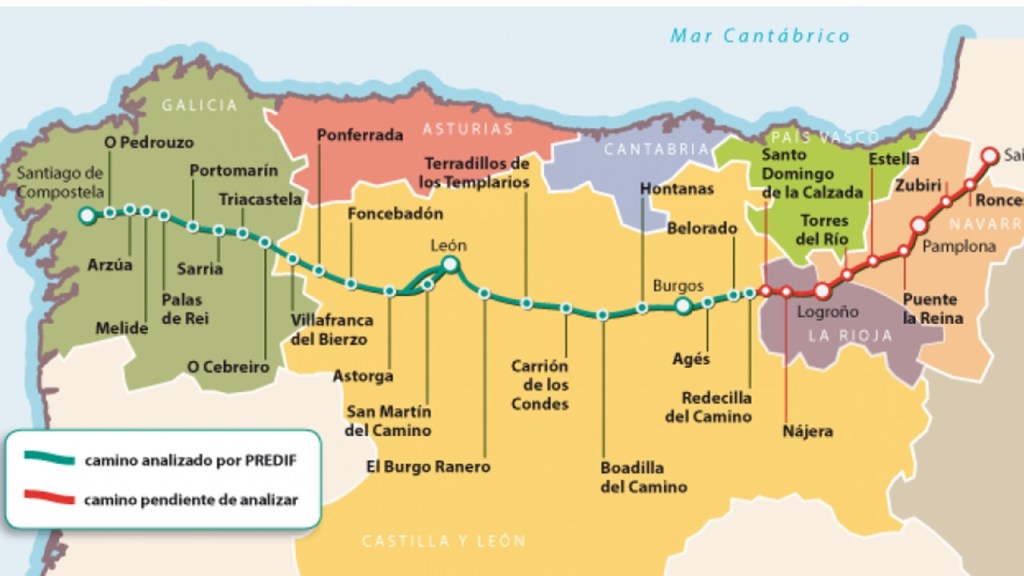 Cruza Navarra, La Rioja, Burgos, Palencia, León, Lugo y su final es Santiago de Compostela, aunque muchos seguían hasta Finisterrae, el Fin de la Tierra o Fisterra.