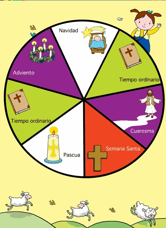 - Blanco: es el color de la luz y nos remite a Dios. Es el color de las grandes fiestas, sobre todo de Pascua y Navidad.