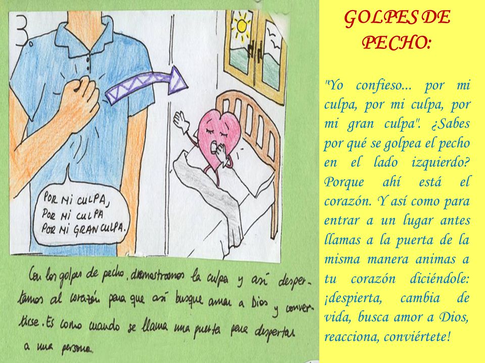 6. Golpes suaves de pecho con la mano: es una de las señales más expresivas de dolor y contrición del corazón en un pecador. Se hace en la confesión, al momento de decir el acto de contrición. Lo hacemos en el momento del “Yo confieso” en la Misa. Así, con ese gesto humilde, agradamos mejor a Dios y expresamos más sentidamente nuestro pesar ante los demás hermanos.