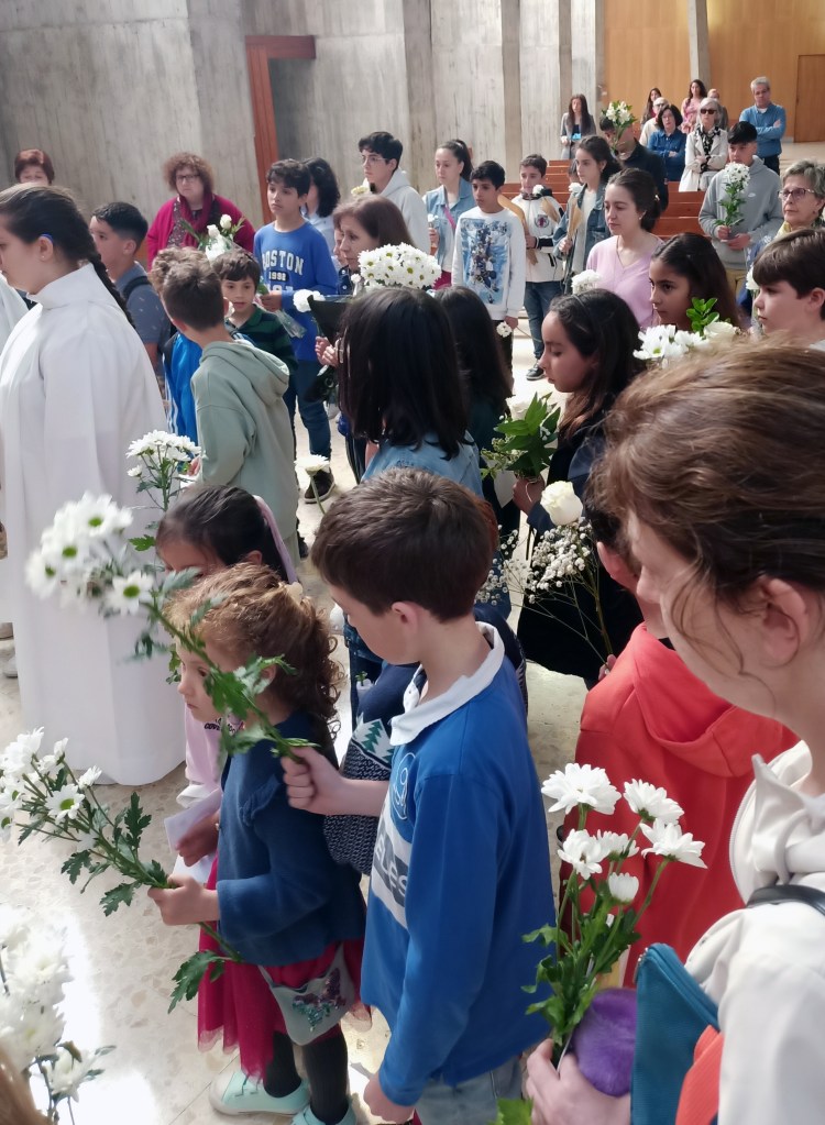 En la Eucaristía del domingo, día 7, niñas y niños de la catequesis depositaron a los pies de la Virgen una ofrenda de flores y una oración.