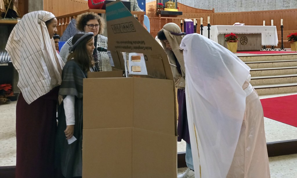 Y sucedió que, mientras estaban allí, le llegó a ella el tiempo del parto 7y dio a luz a su hijo primogénito, lo envolvió en pañales y lo recostó en un pesebre, porque no había sitio para ellos en la posada.