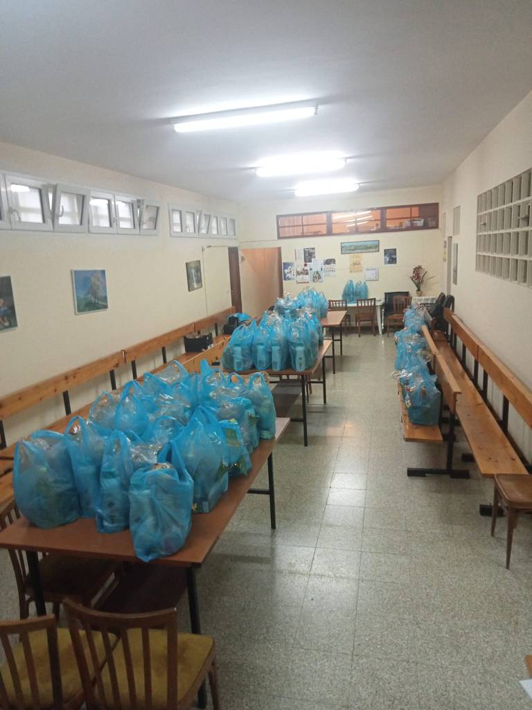 Los voluntarios de Cáritas, con los donativos de muchos, han conseguido llenar las bolsas que ayudarán a celebrar la Navidad a familias de la parroquia.